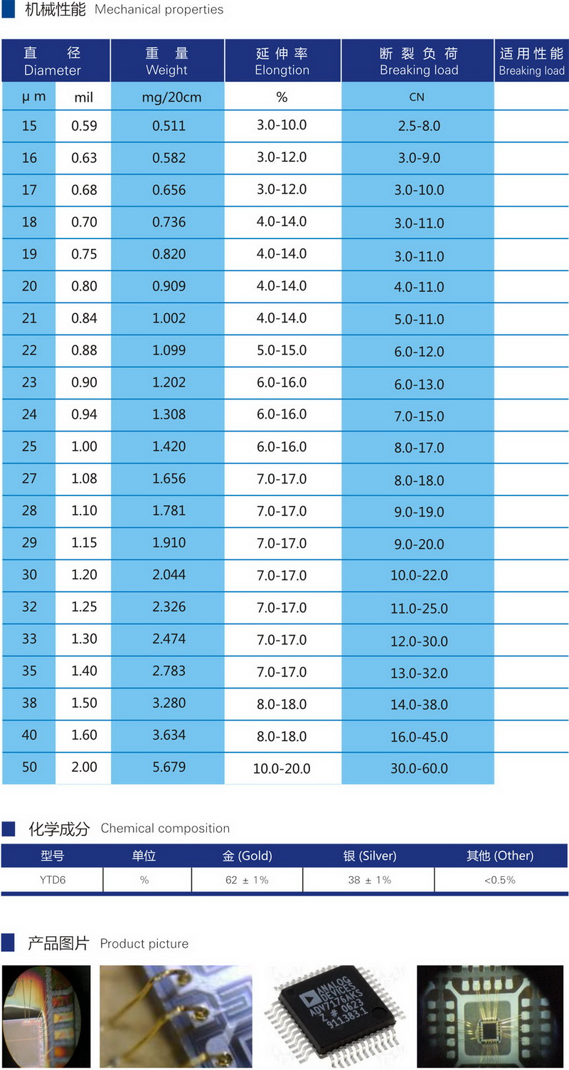 YTD6金银合金丝 日期:2017-02-21 / 人气: / 来源:未知 YTD6金银合金丝银对可见光的反射达到90%以上居所有金属之冠,对LED有增光效应银线的熔断电流比金线提高大约5-10%。 银合金线物理性能优于纯金线。 易于管理,不易遗失;比铜线更容易储存。 上一篇:YT6金银合金丝 ← 返回 下一篇:没有了 →